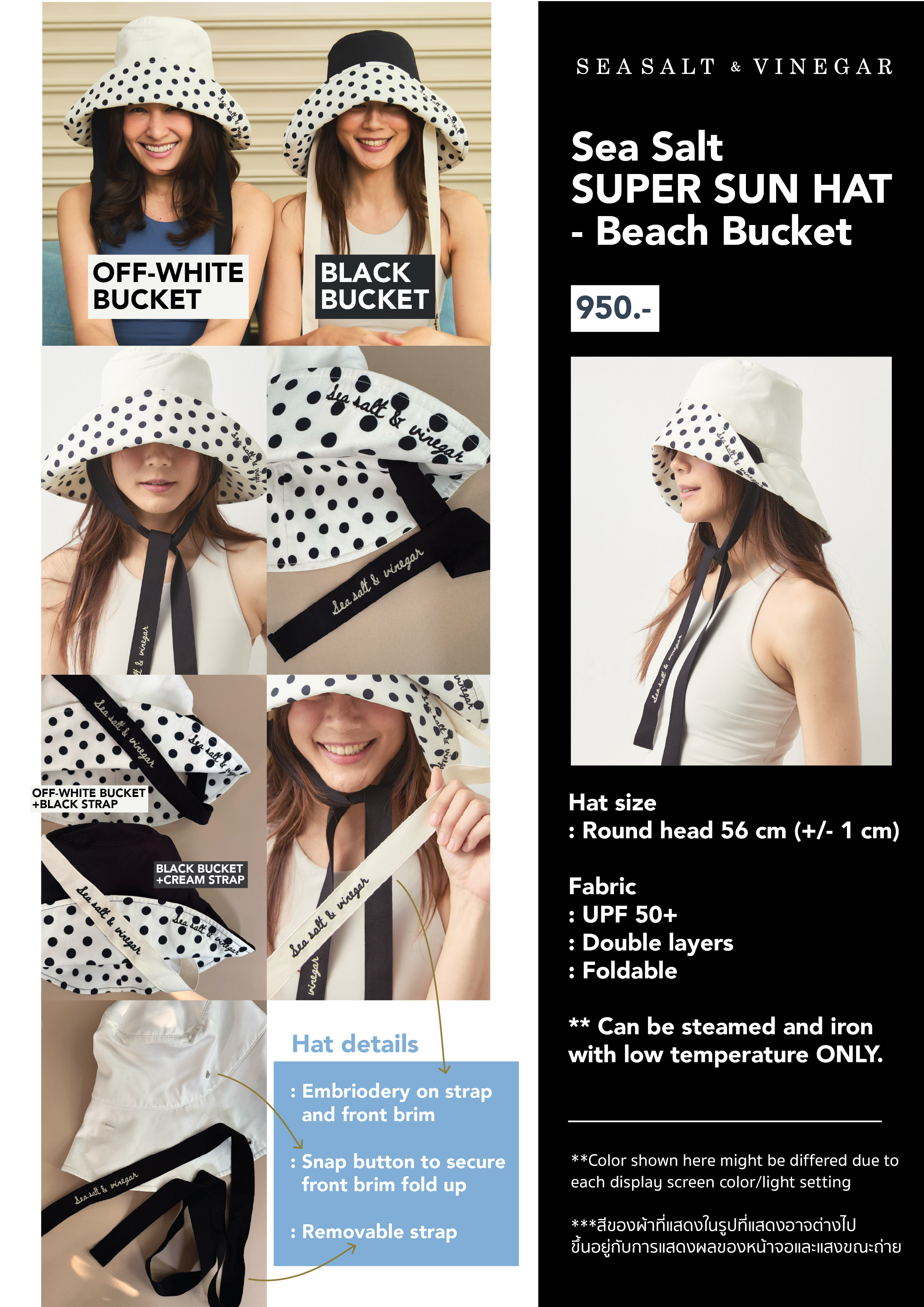 This foldable hat might get wrinkle when being worn several times, please use low temperature steamer or just let the wrinkles give you an easy-beachy look.